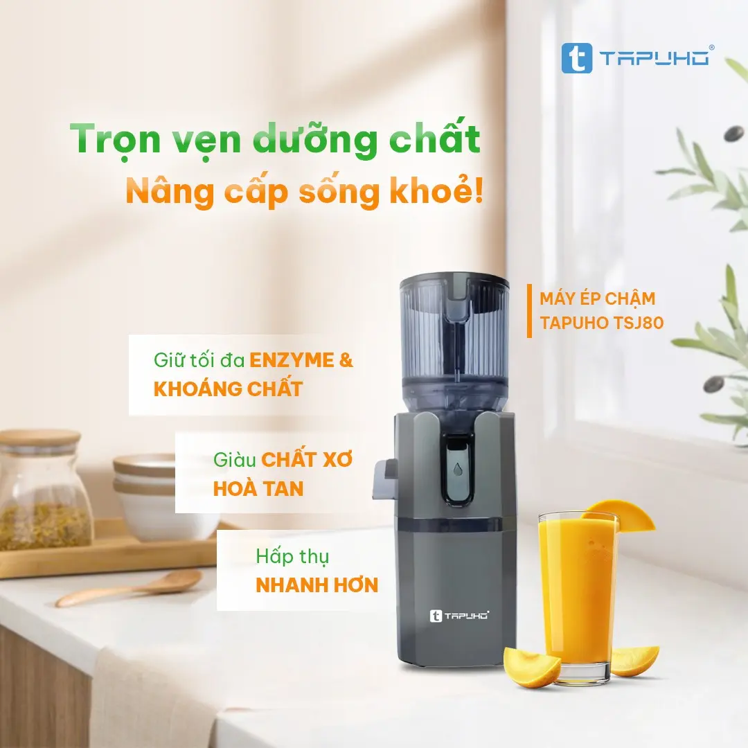 Nếu bạn đang tìm kiếm một chiếc máy ép chậm hiện đại, dễ lắp ráp và vệ sinh, các sản phẩm từ Tapuho chắc chắn sẽ là lựa chọn lý tưởng, đồng hành cùng bạn trong hành trình chăm sóc sức khỏe và nâng tầm trải nghiệm bếp núc mỗi ngày.