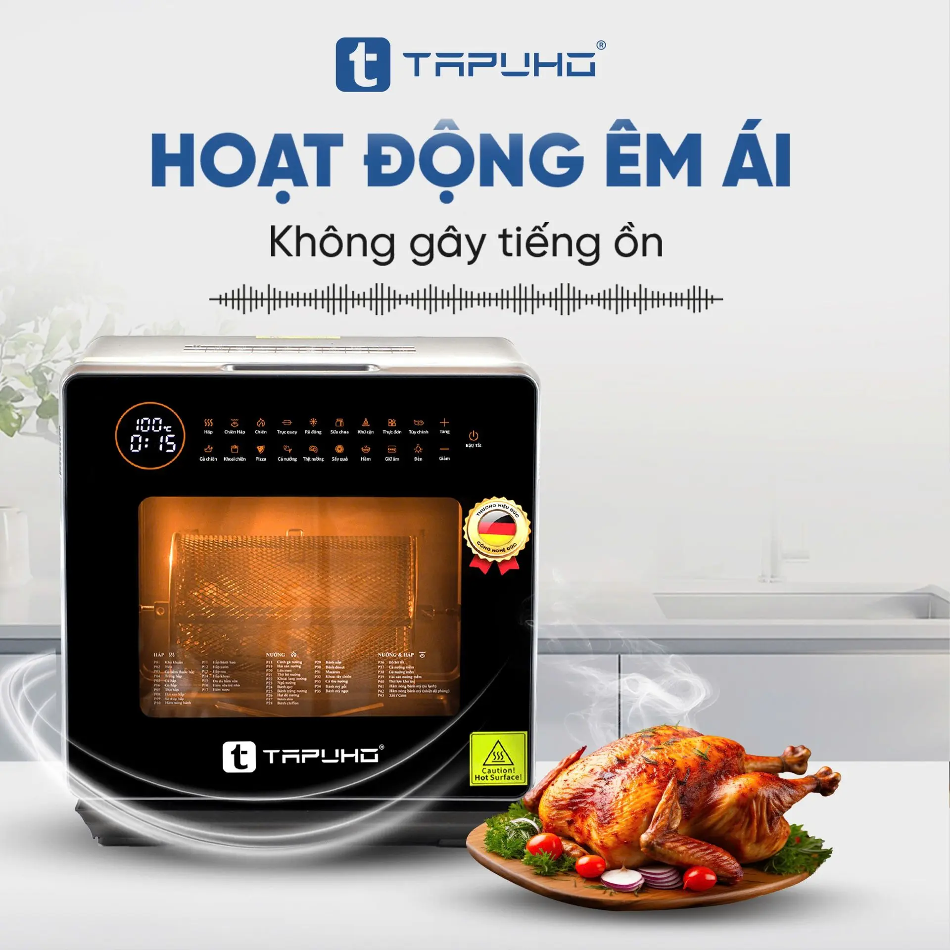 TAPUHO LUXURY STEAM FRYER TSF16 SmartX được cải tiến đáng kể về độ ồn trong quá trình hoạt động. Sản phẩm được đánh giá là một trong những dòng nồi chiên hơi nước có độ ồn nhỏ nhất so với những dòng nồi chiên hơi nước khác. Do đó, bạn có thể hoàn toàn thoải mái nấu nướng mà không lo ảnh hưởng đến những người xung quanh hay những hoạt động giải trí khác.